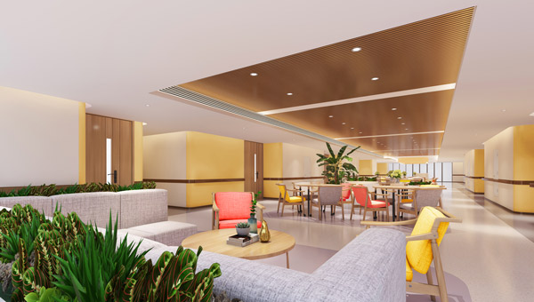 25552.6㎡养护院,设介护区、介助区、自理区、失智区及餐饮、餐饮等功能区,依托康复医院的医疗资源,为长者提供完善的康养服务体系,提供特色康复及照料服务,让长者看病不出门,康复不折腾。