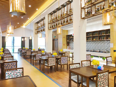 Spacious areas, comfortable sofas as well as dining and beverage bars create a place for leisure, entertainment, social activities and freedom, catering the needs of the elderly to share, communicate, and make friends.