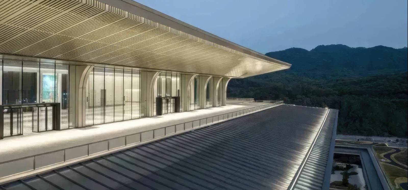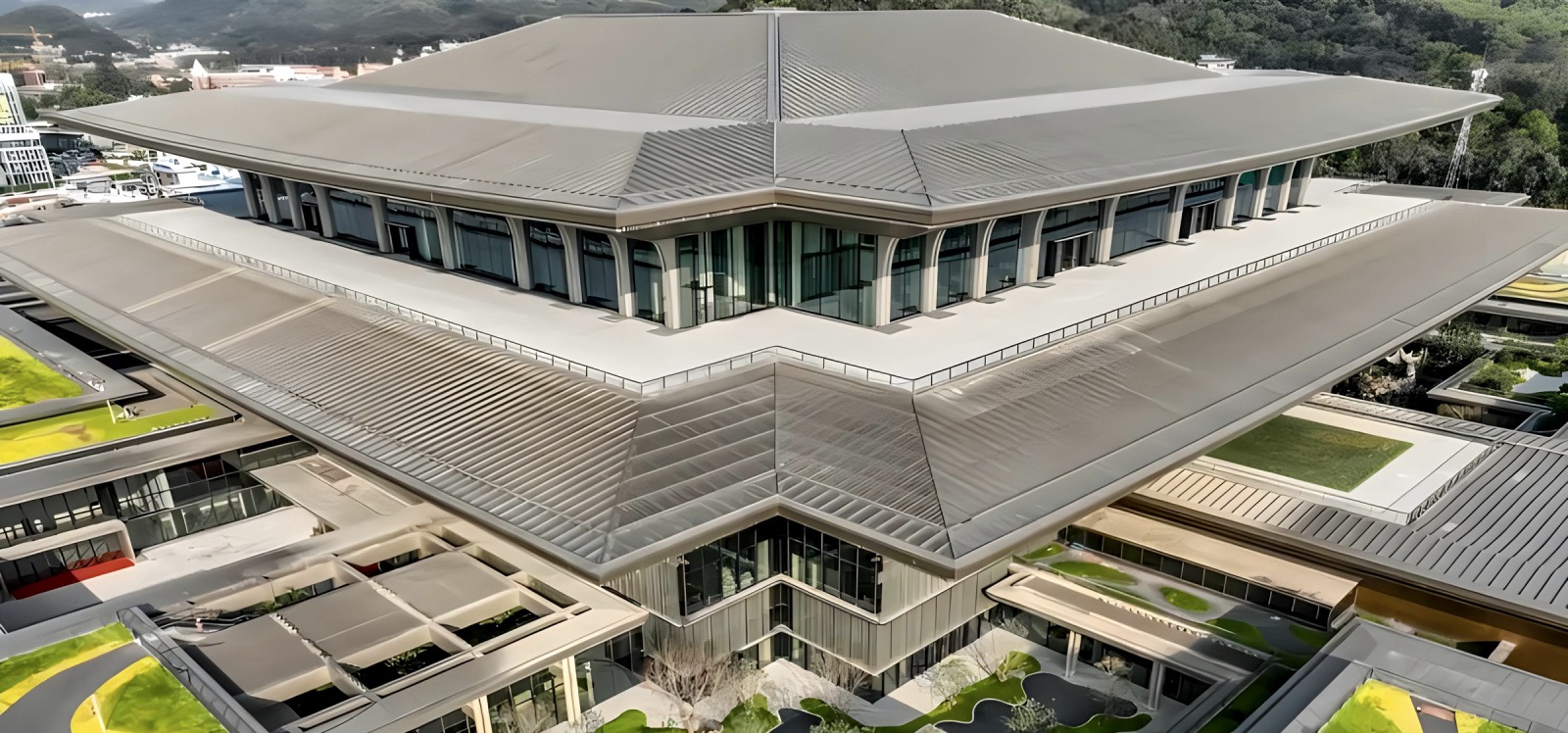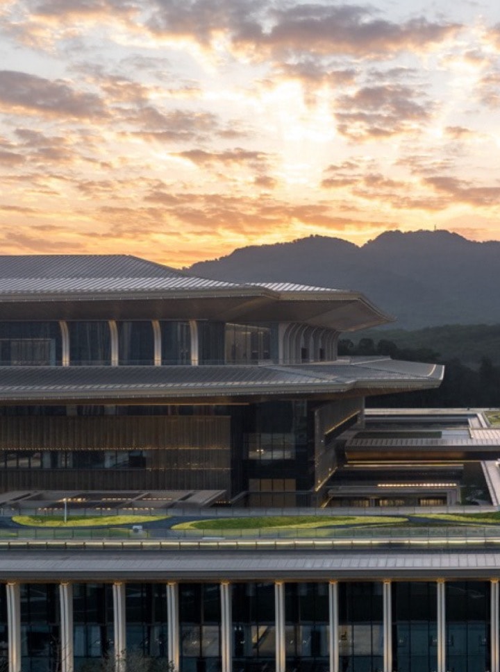 Guangzhou Baiyun International Convention Centre International Convention Hall project is located at the western of Baiyun Mountain in Guangzhou, aiming to be an international political and economic convention centre for Guangdong Province (the Greater Bay Area) and even for the whole country. The project is led by the team of academician He Jingtang, and the construction specifications are in line with the successful international venues in the country. It takes high efficiency, high quality, new classics, and new technology as construction targets, and takes the new Lingnan classics as the starting point. It also adopts the exemplary design form in China and Lingnan architectural and garden elements to integrate with each other, emboding the characteristics of Lingnan garden-style stacked plan layout. With the help of modern technology, it creates flying and converging modelling elevation, which highlights the upward trend of the times, and finally builds it into a landmark building with international standard, Chinese model and Lingnan characteristics. The project was first put into use in December 2022, and has been held multiple major political and business meetings in the province and city. It has received favourable comments from the Government and all sectors of the community as well. The project has now won a number of national awards, including the China Construction Steel Structure Gold Award, the Jin Yu Award, the First Prize for Innovation in the Science and Technology Award of the Building Decoration Industry, the First Prize of the China Illumination Award, and the IFLA Excellence Award.
