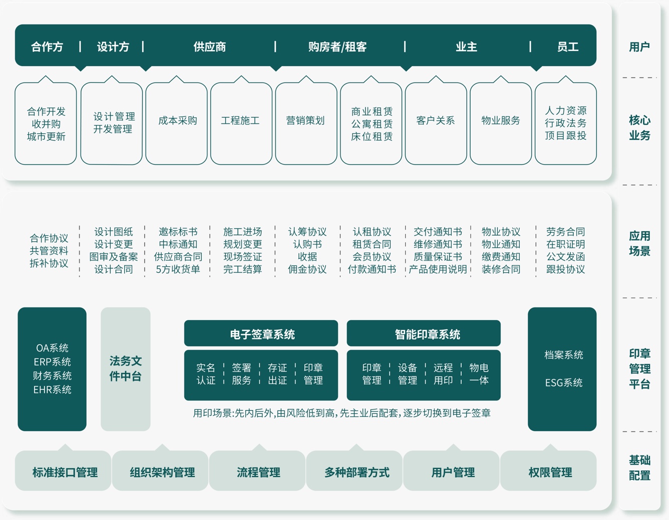 Yuexiu Property integrates its e-signature system with the front-end business system, connecting it to the archive system and ESG system at the back end, forming a closed-loop management model of “front-end approval, mid-end stamping and back-end archiving”, enabling “one-stop” paperless office for document approval, sealing, filing and accessing, and supports Yuexiu Property’s ESG management efforts.