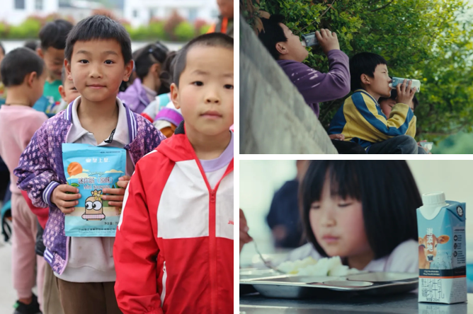 While focusing on rural culture and education, this public welfare activity also contributes to the nutritional care of the students of Zaigong Primary School in Pengcheng Street with practical actions. Yuexiu Commercial Management, in collaboration with the Chinese long-established brands of Yuexiu Group, such as King of Kings and Fengxing Dairy, donated King of Kings food and Xie Tiandi Black Earth Juanshan pure milk to provide students with “a cup of good milk, a delicious” nutritional combination of love and care, and to safeguard the health of their growth.
