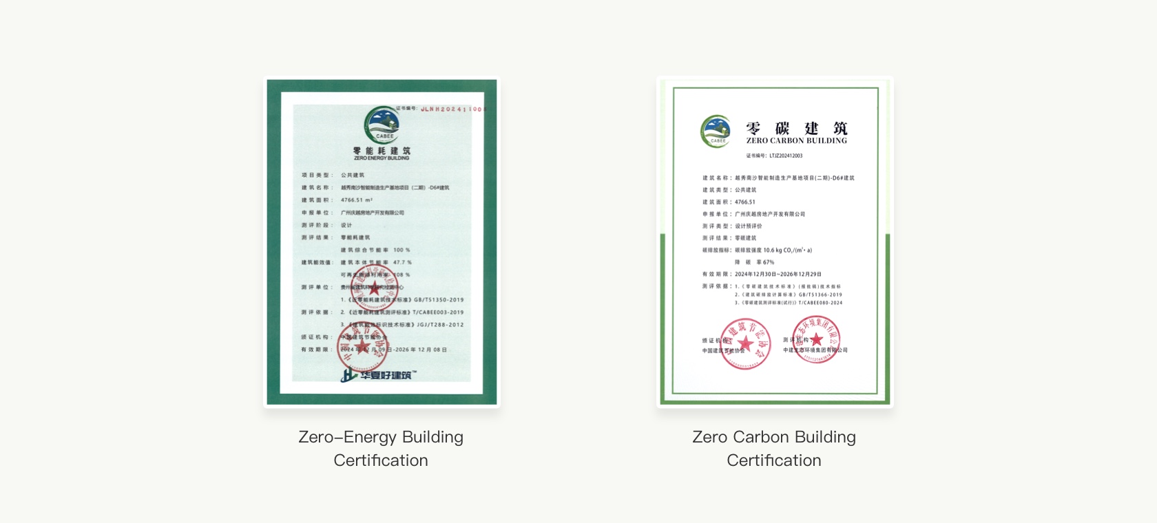 Apart from being the first near-zero pollution finishing pilot project in China, the Yuexiu Property R&D Centre is also the first project in China to obtain all four relevant certifications, namely Zero Carbon Building Certification, Zero-Energy Building Certification, Three-Star Green Building Pre-certification, Healthy Building Gold Certification and Near-Zero Pollution Certification - Gold, in the country. Adopting the principle of “priority for passive design, active optimisation of design, and using renewable energy”, Yuexiu Property's “Dual Zero” Exhibition Hall has developed a “2+3+11” technical system - encompassing “2 pathways + 3 modules + 11 technologies” - to help it achieve the company’s Zero-Energy Building target. The project’s annual operational carbon emissions per unit area is -13.27 kg/CO₂/(m²·a), boasting a carbon reduction rate of 125%, achieving the negative carbon target and fulfilling the requirements for a zero-carbon building.Detailed project descriptions can be found on the project webpage.