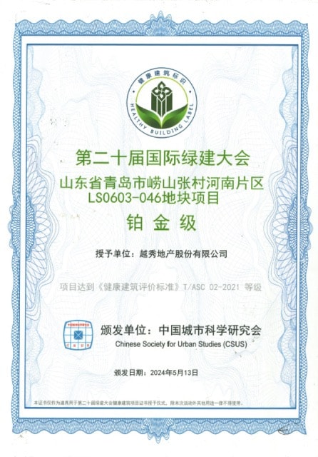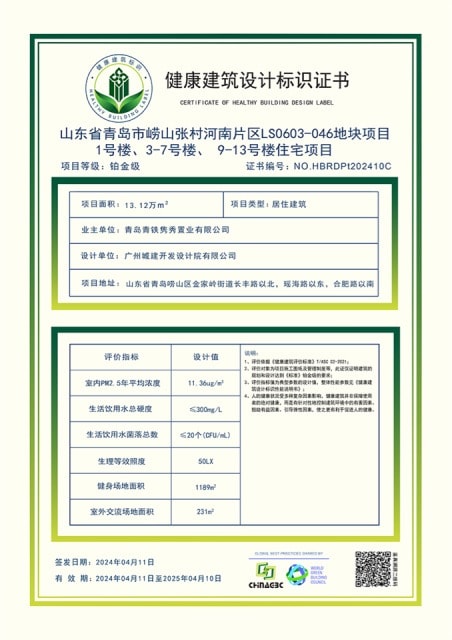 草榴社区 ·青铁和樾府以“绿色”为底色,以可持续发展为目标,基于人本与健康的全方位考量,和府重塑建筑标准,全方位解决居住健康问题,以卓越品质通过“绿色建筑三星级预评价”专家评审,并获得“健康建筑设计标识铂金级”认证,成为青岛市首个获得此项认证的住宅项目。此外还成功斩获美国MUSE设计奖(MUSE Design Awards)最高奖项铂金奖并荣获日本IDPA AWARD国际先锋设计大奖绿色建筑银奖。